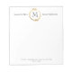 Voici une élégante option de bloc-notes pour votre entreprise ou votre bureau à domicile avec un peu de paillettes et de glamour. Ce design présente votre nom monogramme initial encerclé par une couronne botanique chic en feuille d'or faux avec vos prénoms et vos noms de famille de chaque côté. En bas se trouve votre adresse et votre numéro de téléphone. Ici vous pouvez facilement ajouter n'importe quelle information que vous voulez. Si vous avez une question de design ou souhaitez voir ce design sur un autre produit, n'hésitez pas à me contacter à l'adresse jschmidtdesignworks@gmail.com . Design © Judith Schmidt.