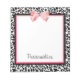 Un bloc-notes empreinte de léopard noir et blanc tendance avec l'image d'un joli ruban rose enveloppé comme un cadeau. Personnalisez en ajoutant votre nom. Un cadeau parfait pour une fille ado ! Image imprimée plate, PAS le ruban réel.