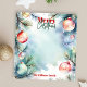 Prenez l'esprit de fête avec ce bloc-notes festif de Noël! Doté d'un arrière - plan bleu et blanc enneigé, orné de branches de pins et de décorations colorées, il est parfait pour les salutations de vacances, les listes de choses à faire, ou comme un cadeau réfléchi. Le texte "Joyeux Noël" en haut et le nom personnalisable en bas ajoutent une touche personnelle. Étalez la joie avec ce bloc-notes élégant et pratique!