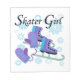 Notre T-shirts de conception de fille de patineur, tasses, sacs, cartes, coussins, horloges murales, souvenirs, sweat - shirts à capuche, et d'autres articles de patinage de thème comporte une paire de patins de bleu et de lavande et des mitaines sur une ficelle entourée par un bon nombre de flocons de neige hivernaux et de texte qui lit la fille de patineur !