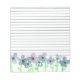 Un joli bloc-notes bordé d'une rangée de fleurs d'aquarelle peintes dans les tons gris, mauve et violet avec des tiges vert printemps et des feuilles. Bloc-notes floral gai pour listes, rappels ou un cadeau mignon!