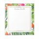Bloc-notes tropical personnalisé avec des feuilles tropicaux verts audacieux et des fleurs rose et orange aux couleurs vives.