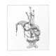 dessin vintage de gnome à face ronde jouant un ensemble de cornemuses surdimensionnées.