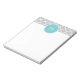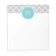 Trendy, stylish, grey or gray and white quatrefoil pattern you can personalize with a white monogram initial in a modern font, on a teal circle label, banner, frame with white cirlar lines border. GraphicsByMi© mi A trendy pattern for her. Use the template field to add your monogram initial or letter or select "customize it" for more editing options like adding your name, text or photo to make your own, unique personalized, one-of-a-chilstom design. Other colors.