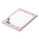 Bandes verticales dans les tons rose et gris. Coins arrondis sur un rectangle blanc central pour l'écriture et un stiletto gris en bas à gauche