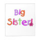 Big Sister garde des boîtes de saké, carreaux, ornements, carnets, coussins, tasses, autocollants, magnets, et plus avec le design de texte vert, rose, orange et violet brillant!