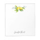 Élégant, lumineux, élégant bloc-notes avec des illustrations aquarelles de citrons et de feuilles. Sympa pour les notes de rappel ! Ce bloc-notes fait de merveilleux cadeaux de vacances ou cadeaux d'hôtesse. Les zones "Modifier ce modèle de conception" situées à droite de l'élément ou cliquez sur le bouton bleu "Customiser" pour arranger le texte, modifier les polices et les couleurs.