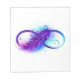 Infinity symbole with a beautiful feather painted in purple and blue bright colors on white background