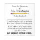Modifiez tout le texte selon vos besoins. Je vais le recréer sur la plus grande taille aussi parce qu'il ne convient pas de changer tout ça. Chaque fois que j'écrivais des familles, je les traitais en famille plutôt qu'en parents, puisque certains enfants n'avaient qu'un seul parent, et de cette façon, cela couvre tout. J'ai également fait savoir immédiatement aux parents que j'appréciais toutes leurs préoccupations, respectais leur soutien et que je prendrais soin de chaque enfant avec l'honneur qui m'était accordé de le faire. Les parents m'ont donné 100% de soutien, parce qu'ils savaient que j'étais sincère et là pour leur enfant. En fait, j'ai eu tellement de soutien, je savais qu'ils se lèveraient pour moi si j'avais besoin de ce que je ferais et défendaient leur enfant. Alors... Profitez de ce que vous faites et profitez de ces enfants ! Merci tant pour être ici avec moi, Sharon Rhea Ford, NBCT-Art (www.zazzle.com/sharonrhea*) S'il vous plaît voir mon populaire (merci à vous tous!) Enseignant - COLLECTIONS scolaires, Collection papeterie, etc.... S'il vous plaît visitez souvent via mon adresse car il m'aide ainsi.