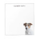 Image d'un mignon chien de race Jack Russell Terrier dans le coin inférieur droit, posé sur un blanc solide. Personnalisez avec votre nom ou message en noir minimaliste.