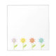 Un Bloc-notes floral moderne avec une illustration originale de marguerites de dainty, une prise contemporaine sur les marguerites classiques, rendu dans un harmonieux mélange de couleurs audacieuses et joyeuses. Les tons rouge, violet, bleu et jaune créent un design saisissant et stimulant qui ajoute une pop de personnalité à votre espace de travail.