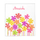 Cette jolie illustration ludique capture le charme d'un jardin fleuri à travers des fleurs simples, stylisées et géométriques dans des teintes joyeuses de rose, jaune, vert, rouge et orange. Chaque fleur éclate d'énergie et d'un soupçon de rétro, créant un coin animé et fantaisiste qui se sent à la fois frais et nostalgique. Parfait pour égayer votre journée d'un soupçon de couleur et d'un sourire. Facile à personnaliser avec votre nom.