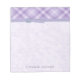 Joli motif de contrôle violet et une florale molle jointe avec un ruban simulé avec une boucle bleue. Personnalisez avec votre nom ou message en lettres de police correspondant.