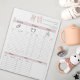 Restez organisé et en plus des tâches quotidiennes de garde d'enfants avec cet adorable bloc-notes quotidien babysitter. Doté d’une ligne de vêtements pour bébé au sommet, ce bloc-notes est parfait pour enregistrer les détails essentiels de la journée d’un enfant. La disposition structurée comprend des sections pour les heures et les descriptions de repas, les changements de couche (humide et sale), les horaires de sommeil, les humeurs, les activités de jeu et des notes supplémentaires, vous assurant de capturer chaque détail que les parents veulent savoir. Conçu pour les soignants et les baby-sitters, ce bloc-notes offre beaucoup d'espace pour écrire des informations claires et concises, vous aidant à maintenir une excellente communication avec les parents. Ses tons doux et neutres et ses icônes minimalistes en font un espace à la fois fonctionnel et visuellement attrayant, tandis que l'en-tête personnalisé ajoute une touche professionnelle à vos services de garde d'enfants. Imprimé sur du papier de haute qualité avec des feuilles détachées, ce bloc-notes est à la fois durable et facile à utiliser. Parfait pour les nounous, les baby-sitters ou les garderies qui cherchent à établir la confiance et à tenir les familles au courant de la vie quotidienne de leur petit.