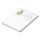 Bloc-notes avec une citation amusante avec l'illustration d'une crème glacée à 3 boules solaire avec des arrosages colorés. Un cône glacé avec des boules de chocolat, fraise et vanille. Un bol de glace néopolite avec une cerise sur le dessus. Des fraises et un ananas sont assis à côté des bols. Motif à rayures vert et blanc à la menthe en arrière - plan.