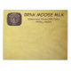 Un étiquette de confiture de lait utilisé par la ferme laitière Matanuska Moose Milk de renommée mondiale et entièrement mythique à Willow Alaska; pas trop loin d'Anchorage. L'image montre une milkmaid traite à la main Matilda, le premier orignal laitier de la ferme. Vous pouvez choisir une couleur arrière - plan. Croyez-le ou non, il y a des laiteries d'orignaux ; un petit nombre en Russie et un en Suède. Le lait d'orignal est cultivé commercialement en Russie. Un veau d'orignal né à la ferme est retiré de sa mère dans les 2-3 heures suivant la naissance et est élevé par des gens. Il est d'abord nourri en bouteille avec un substitut de lait, puis nourri à partir d'un seau. Les animaux s'impriment et deviennent attachés aux humains. Le lait est riche en matières grasses (10%) et solides (21,5%), selon les données recueillies sur l'orignal russe ; les recherches sur le lait d'orignal américain sont dans un état moins avancé qu'en Russie, mais semblent indiquer que les concentrations d'orignaux américains sont encore plus élevées dans leur lait. On dit que le lait d'orignal est un peu salé et amer, avec un soupçon d'aiguilles de pin ou d'épinette. Le lait d'orignal est cultivé commercialement en Russie. Un veau d'orignal né à la ferme est retiré de sa mère dans les 2-3 heures suivant la naissance et est élevé par des gens. Il est d'abord nourri en bouteille avec un substitut de lait, puis nourri à partir d'un seau. Les animaux s'impriment et deviennent attachés aux humains. Comme pour le bétail laitier, les veaux sont retirés de leur mère après un court laps de temps.Les Russes disent que l'orignal reconnait bientôt les sirènes de lait comme leur substitut comme ses veaux de remplacement. À ce stade, ils sont rejetés dans la forêt, mais ils visitent la ferme tous les jours pour être traités pendant la période de lactation (généralement, jusqu'à septembre ou octobre). En hiver, les animaux se promènent librement dans la forêt environnante. Mais en général, ils ne s'éloignent pas trop, mais passent une grande partie de leur temps dans les boisés voisins où les arbres sont coupés, se nourrissant des sous-produits de l'exploitation du bois. Et ils connaissent la ferme comme l'endroit pour une ration quotidienne de farine d'avoine, et comme un endroit sûr pour donner naissance à leurs jeunes. Un sanitorium russe sert du lait d'orignal aux résidents dans la conviction qu'il les aide à se remettre de la maladie ou à gérer les maladies chroniques plus efficacement. Des chercheurs russes ont recommandé que le lait d'orignal soit utilisé pour prévenir les maladies gastro-entérologiques chez les enfants. La ferme Elk (Moose sont appelés Elk in Eurpoe) House (Älgens Hus) à Bjurholm, en Suède, est considéré comme le seul producteur mondial de fromage d'orignal. Le fromage se vend environ 500 dollars la livre. Le restaurant de l'Algens Hus sert des plats à base de fromage d'orignal. Fromage simple avec du pain ou des biscuits, ou mieux encore, mousse d'orignal congelé. Mieux servi avec des framboises.
