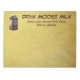 Une brique de lait de la ferme laitière Matanuska Moose Milk de renommée mondiale et entièrement mythique à Willow Alaska; pas trop loin d'Anchorage. Le slogan "Buvez du lait d'orignal" apparaît également. L'image du logo est ornée d'une milkmaid qui traite la Matilda, la première orignale laitière de la ferme. Vous pouvez choisir une couleur arrière - plan. Croyez-le ou non, il y a des laiteries d'orignaux ; un petit nombre en Russie et un en Suède. Le lait d'orignal est cultivé commercialement en Russie. Un veau d'orignal né à la ferme est retiré de sa mère dans les 2-3 heures suivant la naissance et est élevé par des gens. Il est d'abord nourri en bouteille avec un substitut de lait, puis nourri à partir d'un seau. Les animaux s'impriment et deviennent attachés aux humains. Le lait est riche en matières grasses (10%) et solides (21,5%), selon les données recueillies sur l'orignal russe ; les recherches sur le lait d'orignal américain sont dans un état moins avancé qu'en Russie, mais semblent indiquer que les concentrations d'orignaux américains sont encore plus élevées dans leur lait. On dit que le lait d'orignal est un peu salé et amer, avec un soupçon d'aiguilles de pin ou d'épinette. Le lait d'orignal est cultivé commercialement en Russie. Un veau d'orignal né à la ferme est retiré de sa mère dans les 2-3 heures suivant la naissance et est élevé par des gens. Il est d'abord nourri en bouteille avec un substitut de lait, puis nourri à partir d'un seau. Les animaux s'impriment et deviennent attachés aux humains. Comme pour le bétail laitier, les veaux sont retirés de leur mère après un court laps de temps.Les Russes disent que l'orignal reconnait bientôt les sirènes de lait comme leur substitut comme ses veaux de remplacement. À ce stade, ils sont rejetés dans la forêt, mais ils visitent la ferme tous les jours pour être traités pendant la période de lactation (généralement, jusqu'à septembre ou octobre). En hiver, les animaux se promènent librement dans la forêt environnante. Mais en général, ils ne s'éloignent pas trop, mais passent une grande partie de leur temps dans les boisés voisins où les arbres sont coupés, se nourrissant des sous-produits de l'exploitation du bois. Et ils connaissent la ferme comme l'endroit pour une ration quotidienne de farine d'avoine, et comme un endroit sûr pour donner naissance à leurs jeunes. Un sanitorium russe sert du lait d'orignal aux résidents dans la conviction qu'il les aide à se remettre de la maladie ou à gérer les maladies chroniques plus efficacement. Des chercheurs russes ont recommandé que le lait d'orignal soit utilisé pour prévenir les maladies gastro-entérologiques chez les enfants. La ferme Elk (Oie sont appelés Elk in Europe) House (Älgens Hus) à Bjurholm, en Suède, est considéré comme le seul producteur mondial de fromage d'orignal. Le fromage se vend environ 500 dollars la livre. Le restaurant de l'Algens Hus sert des plats à base de fromage d'orignal. Fromage simple avec du pain ou des biscuits, ou mieux encore, mousse d'orignal congelé. Mieux servi avec des framboises.