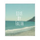 Live by Faith Bible Verse merchandise Aqua beach ocean arrière - plan avec filtre rétro avec l'écriture inspirante de 2 Corinthians.