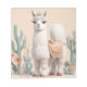 Ce magnifique lama se dresse fièrement dans le désert avec sa selle. Le soleil brille sur sa fourrure épaisse, les cactus et les fleurs qui l'entourent apportent une touche de couleur au paysage. Ce design saisit la beauté et la majesté du lama, ainsi que la nature sauvage du désert.