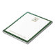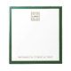Améliorez votre expérience de prise de notes avec ce bloc-notes de luxe personnalisable avec une image de logo carré en haut avec votre nom d'entreprise dans la typographie de bloc classique or sur un arrière - plan blanc encadré en vert. Idéal pour tous les environnements de bureau ou de maison.