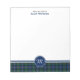 Tampon de note personnalisé avec bordure plaid et monogramme. Comprend le tartan de clan pour la famille MacLeod de Skye et ses septs. motif vintage écossais en plaid bleu foncé et vert, avec des tons rouges, jaunes et noirs.