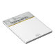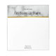 En haut, il y a une fausse bande de marbre gris qui a du texte d'affichage noir que vous pouvez remplacer par votre nom ou un message personnalisé (Montré : Du bureau de Prénom Nom) Une mince bande d'or faux est sous la bande de marbre. Le reste du bloc-notes est une zone d'écriture blanche. Le look or est une oeuvre d'art (pas de papier peint). En bas de la zone d'écriture blanche, il y a du texte d'affichage noir que vous pouvez modifier (ou supprimer) pour votre numéro de téléphone et votre adresse de messagerie.
