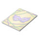 Masque violet brillant avec perles vertes et violettes sur un arrière - plan jaune.