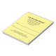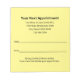 Les notes indiquent "Votre prochain rendez-vous" en haut. Des lignes de texte noir sont disponibles pour le nom du cabinet médical, l'adresse, le numéro de téléphone et le site web. Il y a également des lignes pour la date et l'heure du rendez-vous. Le bas contient du texte que vous pouvez modifier pour afficher un message personnalisé. Tout le texte peut être modifié ou supprimé. Les feuilles sont jaune clair.