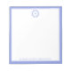 Ce magnifique bloc-notes d'inspiration côtière comprend une couronne d'étoiles de mer bleue sur le blanc avec une bordure bleue assortie et un monogramme que vous pouvez personnaliser avec votre choix d'origine et votre choix de nom ou de texte spécial sur le fond.