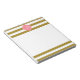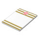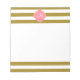 Monogramme métal or et bloc-notes rayé rose. Le design se compose d'un motif à rayures blanches et or métallique et d'une forme de quatrefoil rose au milieu avec votre initiale personnalisée.