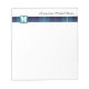 Monogramme moderne Professional Script Name Tartan Notepad Elégant, moderne et tendance, bloc-notes personnalisable comprend "une note de nom personnalisé" et "monogramme personnalisé" sur badge bleu / vert cuir & bleu foncé / Celadon bleu plaid en dessous sur arrière - plan blanc. Personnalisez ce joli bloc-notes comme un cadeau merveilleux en ajoutant votre nom ou votre texte / en changeant la police, la couleur, la taille et la position.