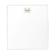 Bloc-Notes De Luxe Glam Noir Et Or Monogramme. Cet élégant design exhale le raffinement avec un arrière - plan blanc propre et une luxueuse lettre initiale en or clair au centre supérieur. Sous la première, un nom de calligraphie noir épuré ajoute une touche de glamour intemporel. La disposition raffinée en fait un ajout chic à n'importe quel bureau ou collection de papeterie. Parfait pour noter les rappels, créer des listes de tâches ou laisser des messages réfléchis, ce bloc-notes associe fonctionnalité et style haut de gamme. Idéal pour un usage personnel ou comme cadeau réfléchi, c’est une façon glamour d’élever vos notes quotidiennes. Que ce soit pour le travail, l'école ou le don à quelqu'un de spécial, ce design luxueux ajoute un soupçon d'opulence sous-estimé à vos articles de papeterie essentiels.