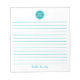 Simple Elégant Turquoise Lined Monogramme Nom Bloc-notes Ces blocs-notes personnalisables sont simples pour chaque utilisation quotidienne ou envoyer une note formelle à quelqu'un de votre bureau ou bureau à domicile. Vous pouvez également choisir une variété de couleurs dans notre boutique pour vos besoins de bureau à domicile. Personnalisez ces blocs-notes avec votre nom ou donnez comme cadeau et personnaliser avec vos amis ou les noms de famille afin qu'ils puissent les utiliser à leur domicile ou au bureau.