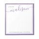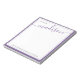 Moderne, élégant blanc pastel lavande violet Nom | Depuis Le Bureau Du Bloc-Notes. Il dispose d'une élégante signature par lettre à la main prénom ou monogramme autour d'un cadre double. Customisez votre nom ou votre numéro de monogramme initial, votre adresse e-mail et votre numéro de téléphone. Si vous n'en avez pas besoin, vous pouvez le supprimer. Ce bloc-notes féminin, joli et moderne est une idée cadeau parfaite pour les enseignants et pour elle pour toutes les occasions.
