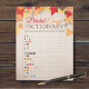Bloc-notes de jeu de Fête des mariées Emoji Automne. Avec de belles feuilles de chute brillantes sur un arrière - plan en bois lavé. RÉPONSE CLÉ : 1 KISS THE BRIDE 2 BRIDE TO BE 3 SWEET HEART 4 FLEURS GIRL 5 CHAMPAGNE TOAST 6 COUPE LE GÂTEAU 7 TOSS THE BOUQUET 8 RING BEARER 9 BRIDEZILLA 10 HONEYMOON 11 JUSQU'À NOTRE MORT PARTIE 12 JE VOUS AIME K 13 BRIDE BLANCHE 14 PIEDS FROID 15 QUELQUE CHOSE DE VIEILLE, NOUVEAU, EMPRUNTÉ, BLEU