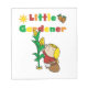 Une petite fille blonde regarde vers le haut pour voir le sommet de la tige de maïs pousser dans son jardin sur ce design de jardinage mignon et coloré sur les bibs, les linges de bébé, les couvertures, les pâtisseries, les assiettes, les coussins et beaucoup d'autres articles.