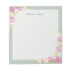 Celebrate the beauty of spring with this elegant personalized notepad featuring pink tulips and delicate white daffodils. Soft sage tones and graceful floral corners frame a clean writing space. Add your own custom name or text to the top creating a stationery piece that feels both classic and personal.