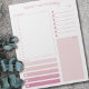 Planificateur quotidien personnalisé en rose avec des sections pour votre emploi du temps, rappels, liste de choses à faire et notes. Ce bloc-notes déchirable est imprimé sur chaque page pour vous durer 40 jours.