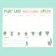 Un ordinateur portable Weekly Planner, mignon et coloré, spécialement conçu pour les amateurs de plantes. Avec des illustrations de plantes verts feuillus intérieurs en pots roses et en terre cuite, et des sections utiles pour la planification de votre semaine rapide, facile et esthétique!