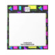 Rétro, tendance et différent - ce design amusant des années 80 a un motif géométrique coloré de nombreuses formes dans des couleurs vives - triangles, carrés, rectangles, avec des lignes et des points. Le motif de style années 80 borde un grand espace rectangle blanc pour prendre des notes ou gribouiller. Il y a un petit carré en haut pour mettre le logo de votre entreprise, et du texte personnalisé pour un nom d'entreprise et un site Web.