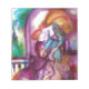 Scène de balcon de Romeo et Juilet tragédie par William Shakespeare .Tableau d'aquarelle contemporaine avec feuille d'or et couleurs irisées en violet clair, rose, vert, jaune orange, turquoise, turquase, blanc ..Peinture par Bulgan Lumini (c)