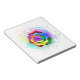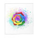 Grand rose fleuri avec pétales arc-en-ciel sur arrière - plan blanc, peint sur des éclaboussures de peinture colorée et lumineuse. 3d