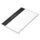 Bloc-notes Moderne Professionnel avec nom dans un style de police de caractères manuscrit moderne blanc avec texte personnalisé dans un style de police sans empattement moderne blanc, sur une bordure supérieure noire, sur fond blanc.