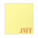 Ces blocs-notes jaune clair ont un texte orange. Vous pouvez le modifier pour afficher votre nom dans une petite police et votre monogramme dans une grande police. Le texte se trouve en bas à droite.