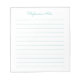 Bloc-notes personnalisé Ces blocs-notes personnalisables sont simples à utiliser tous les jours ou à envoyer une note formelle à quelqu'un de votre bureau ou bureau. Vous pouvez également choisir une variété de couleurs dans notre boutique pour vos besoins de bureau à domicile. Personnalisez ces blocs-notes avec votre nom ou donnez comme cadeau et personnaliser avec vos amis ou les noms de famille afin qu'ils puissent les utiliser à leur domicile ou au bureau.