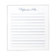 Simple Elegant Navy Bleu Lined Bloc-notes personnalisé Ces blocs-notes personnalisables sont simples pour un usage quotidien ou pour envoyer une note formelle à quelqu'un de votre bureau ou bureau. Vous pouvez également choisir une variété de couleurs dans notre boutique pour vos besoins de bureau à domicile. Personnalisez ces blocs-notes avec votre nom ou donnez comme cadeau et personnaliser avec vos amis ou les noms de famille afin qu'ils puissent les utiliser à leur domicile ou au bureau.