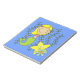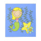 Une sirène d'une chevelure blonde de sourire sous l'eau avec l'algue et les étoiles de mer jaunes, une conception mignonne de thème d'océan pour les filles qui aiment des sirènes. T-shirts de sirène, combinaisons, bavoirs, couvertures, tissus de rot, magnet, cartes, sacs, autocollants, porte - clés, mousepads, coussins, horloges murales, souvenirs, et beaucoup plus !