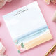 Profitez de la tranquillité du bord de mer grâce à ce bloc-notes personnalisé. Une scène de plage sereine, avec des vagues douces, du sable doux et des fleurs roses délicates, agrémente la partie inférieure du design. La palette de couleurs pastel crée une atmosphère apaisante et élégante. Ajoutez votre texte personnalisé pour faire de ce bloc-notes un accessoire unique et pratique. Idéal pour noter les rappels, les plans de plage ou les notes de tous les jours.