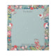 Parfait pour tous ceux qui aiment les souris et les caprices, ce bloc-notes peut être personnalisé avec un nom pour un look personnalisé! Des souris des forêts boisées portant soit un foulard soit un chapeau de Père Noël, se baladent parmi des feuilles, fougères et fleurs déchirés par la neige sur un arrière - plan bleu turquoise foncé. Il y a aussi des baies et des champignons à déguster pour chaque souris ! Les verts, les roses et les turquoises déclenchent les souris grises. Lit, "From the desk of" au sommet de la zone de note turquoise de lumière enneigée. Parfait pour ces notes de Noël ou pour égayer votre bureau pendant les vacances ! Oeuvre originale de Tuzi Williams.