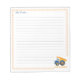 Personnalisez ce modèle de camion à benne mignonne en ajoutant un nom, un surnom ou un slogan. L'oeuvre de ce design présente un joli camion à benne en jaune, orange et bleu. Sous le camion sont les mots "En construction". Les garçons de tout âge aimeront faire des notes, gribouiller ou dessiner sur ce bloc-notes. Le design original a des lignes pour rendre votre écriture propre et rangée, mais vous pouvez supprimer les lignes pour faire un doodling personnalisé. Composez plusieurs comme cadeaux pour les garçons de votre vie. Oh, et les filles aiment les camions aussi. [En construction Camion bleu]